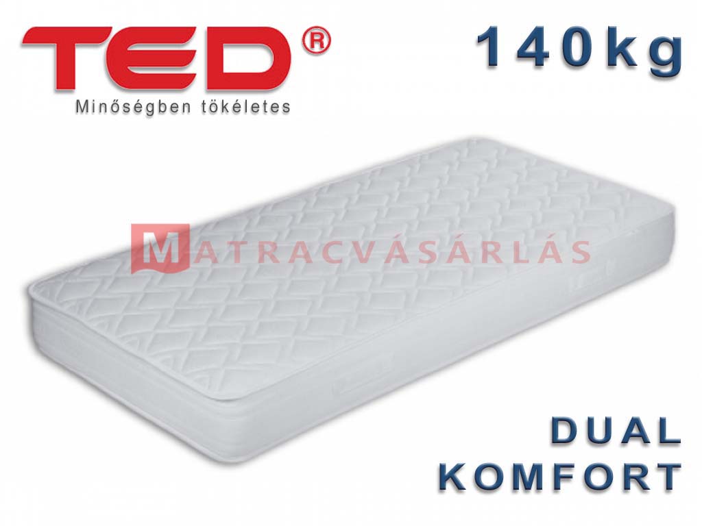 TED Duplo anatómiai matrac a feszesebb komfortot kedvelők matraca lesz, bár a kétoldalas kialakításnak köszönhetően a matrac egyik oldala inkább az enyhén lágy kategóriába eset, de még mindig semmi esetre sem puha a matrac. A 20cm vastag matrac akár 150 kg-ig is terhelhető oldalanként. A matrac belső magja a legmodernebb technológiával kialakított speciális Novaflex hideghab mag. A matrac antiallergén huzata véd az allergiás problémák kialakulásától. Az antisztatikus matrachuzat elvezeti az elektromos töltéseket, a fölösleges bioelektromos feszültséget és így biztosítja a nyugodt alvást, a tökéletes és regeneráló mindennapi pihenést.