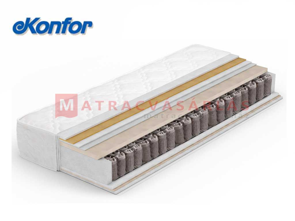 Konfor matrac márka a hagyományos török matracgyártás meghatározó és egyik legnagyobb márkaneve, amely több, mint négy évtizede van jelen a világ matrac piacán. Konfor bonellrugós matracok legfontosabb jellemzői a magyar piac elvárásainak megfelelő keménység, a felhasznált alapanyagok minőségének köszönhetően a fokozott strapabíróság. A Konfor bonellrugós matracok matrac magassága, kiemelkedő teljes vastagsága és az olcsó ár együttesen piacképes matrac családot alkotnak, a Konfor matracok napjainkra Magyarországon is a kedvelt és elérhető árfekvésben elhelyezkedő matrac márka lett. Konfor bolellrugós matracok, Konfor herkulesrugós matracok és Konfor zsákrugós matracok között mindenki megtalálhatja a neki megfelelő keménységű és árfekvésü matzracot, aki a könnyen megfizethető középkategóriában keresi matracát. A Konfor cég 40 éves szakmai múltja, a fejlett technológia és a magas fokú mérnöki munka garantálja a minőségi, tartós matracok megbízhatóságát elérhető áron. A gyártó 10 év teljeskörű garanciát vállal a rugószerkezetre és 2 évet a külső borító huzatra.
